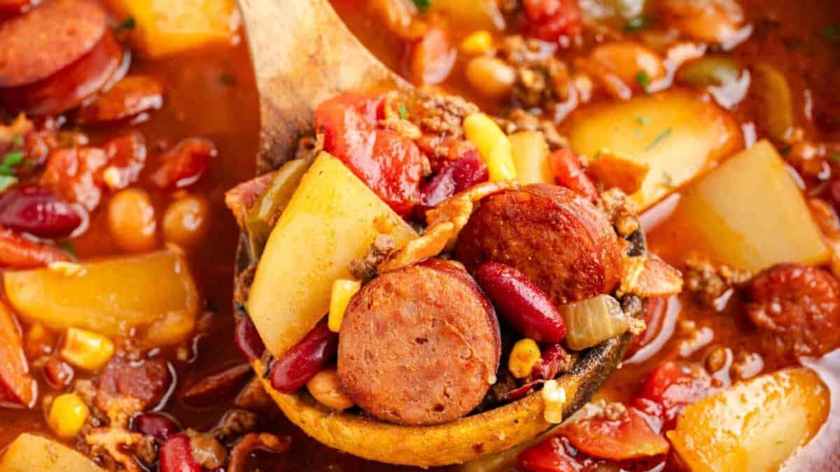 Hearty Cowboy Stew with Ground Beef and Sausage