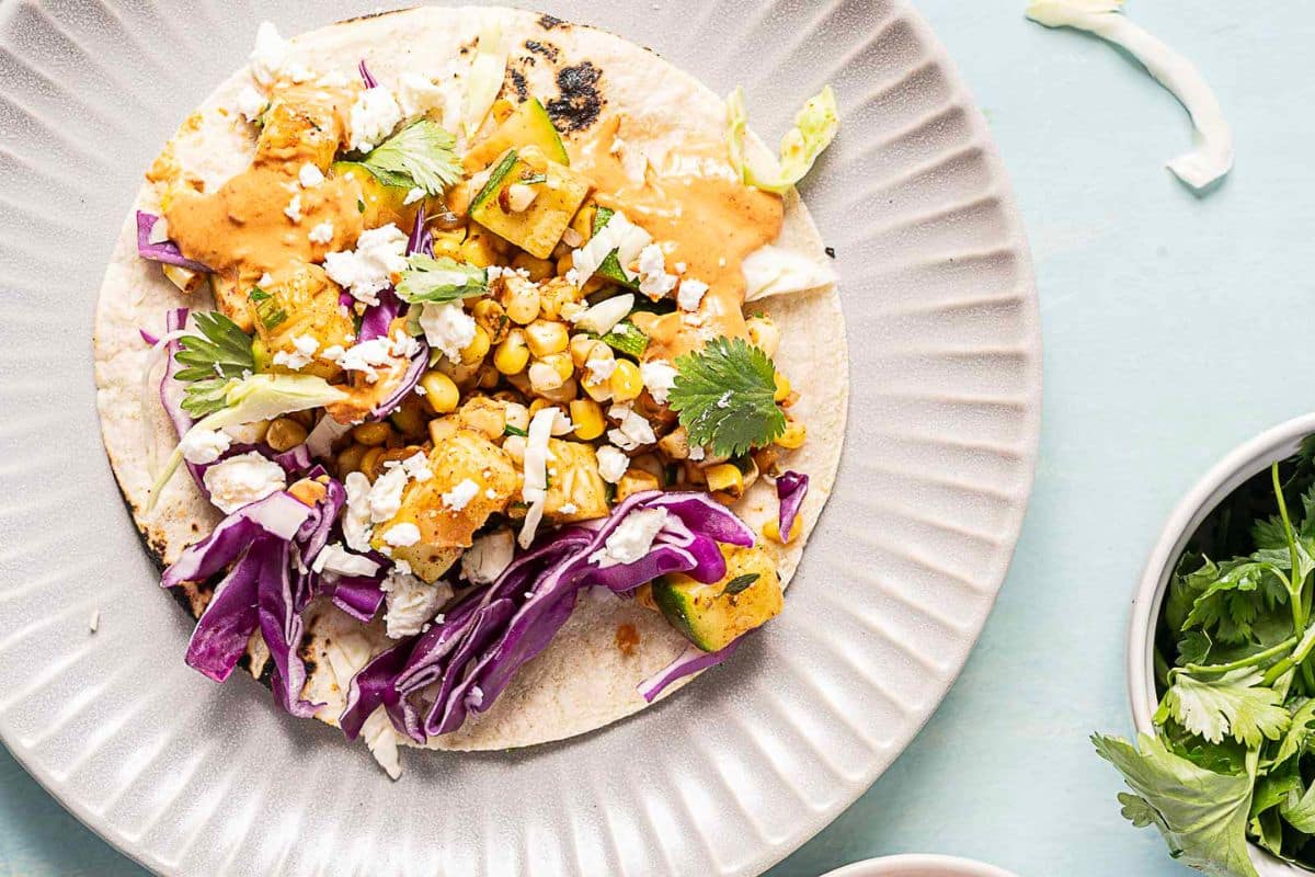 Zucchini Tacos with Chipotle Sauce are a quick, bold weeknight dinner. Fresh veggies and sweet corn are complemented by a smoky, spicy sauce. These tacos are flavorful, fun, and easy to make anytime.