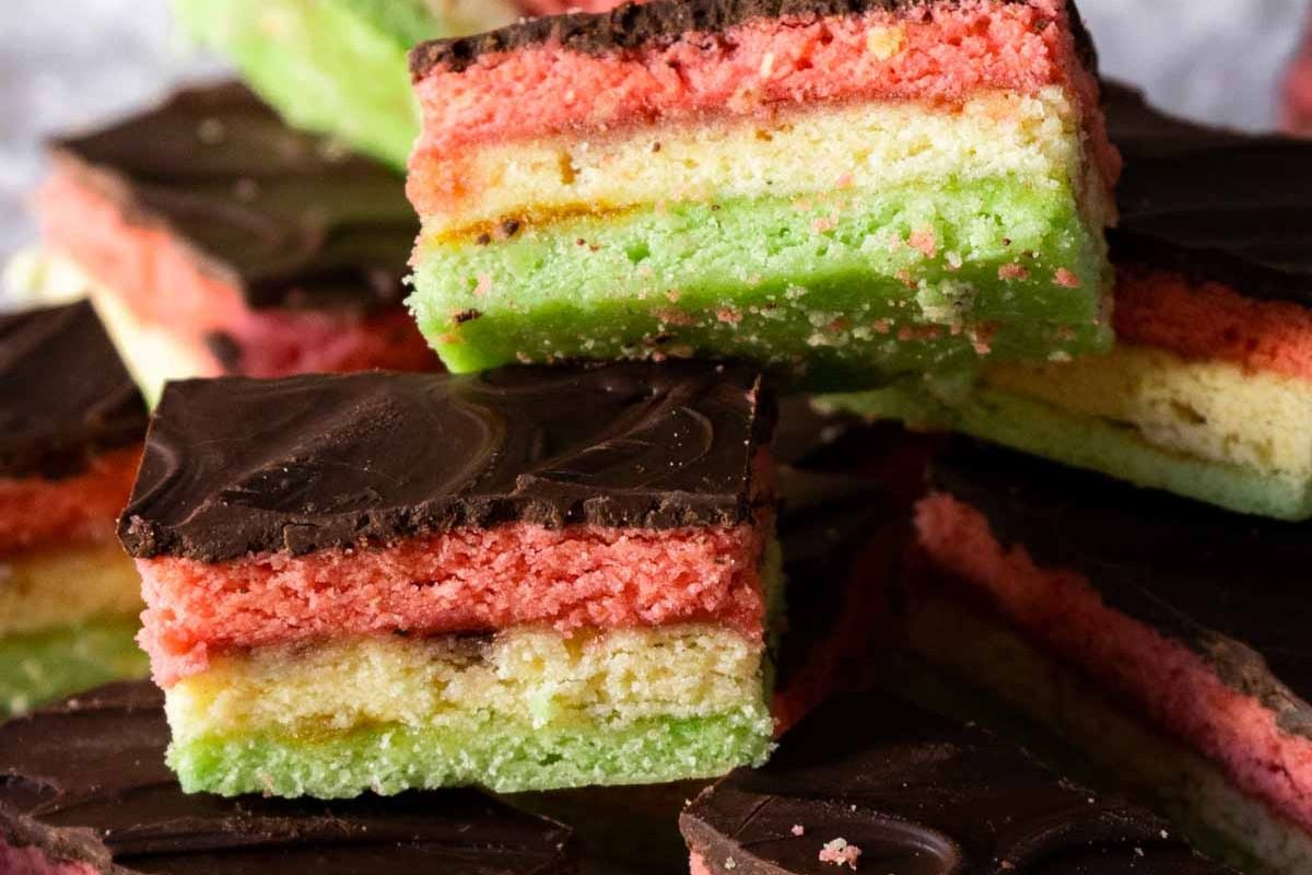 Rainbow Layer Cookies are colorful, festive, and delightfully sweet, featuring layers of almond, jam, and chocolate. These seven-layer cookies are easier to make than you expect and perfect for special occasions or treats.