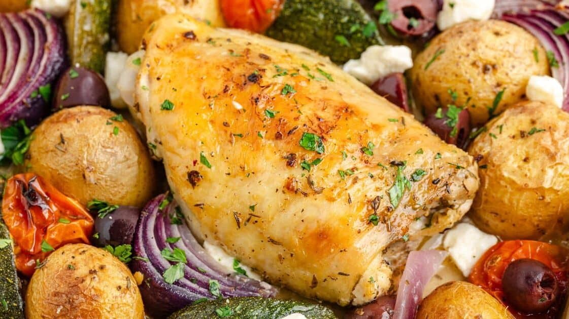 Get the Recipe: Easy Greek Sheet Pan Chicken with Roasted Vegetables