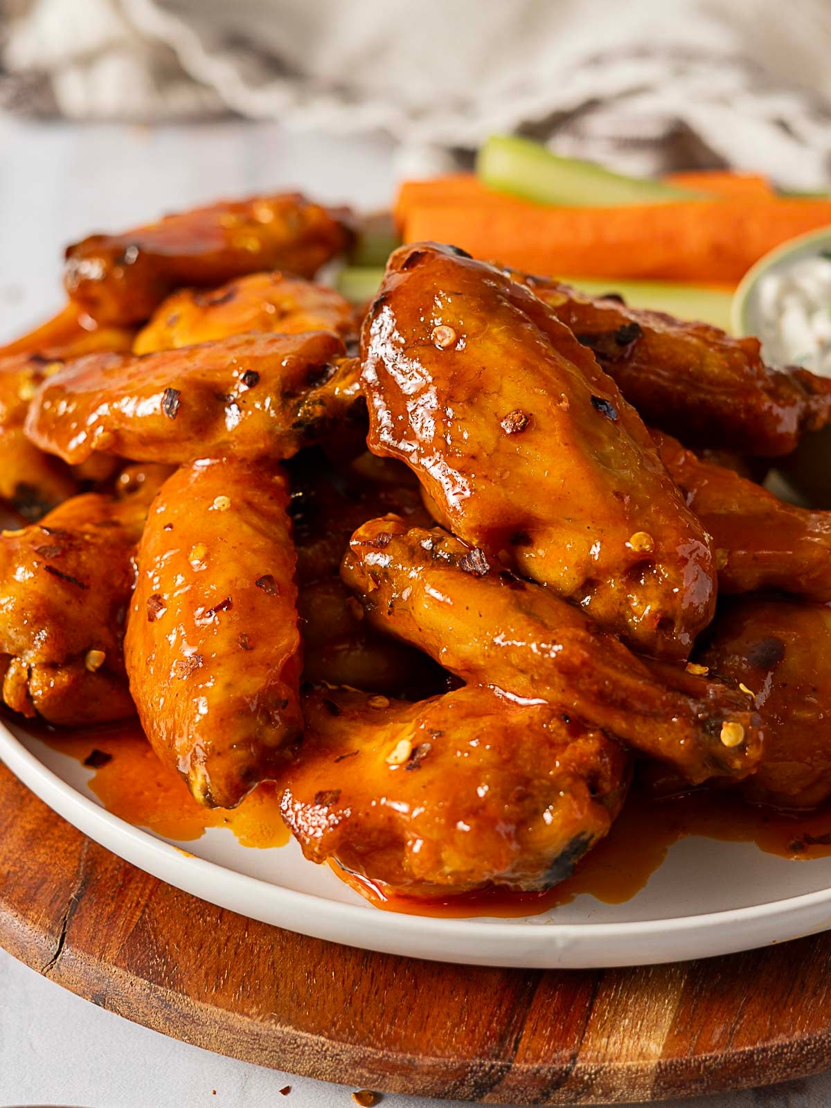 - Chili Flakes- I like things bold and spicy, so adding extra red pepper flakes is the way to go. To keep things mild you can skip the extra pepper and add more butter to the wing sauce.